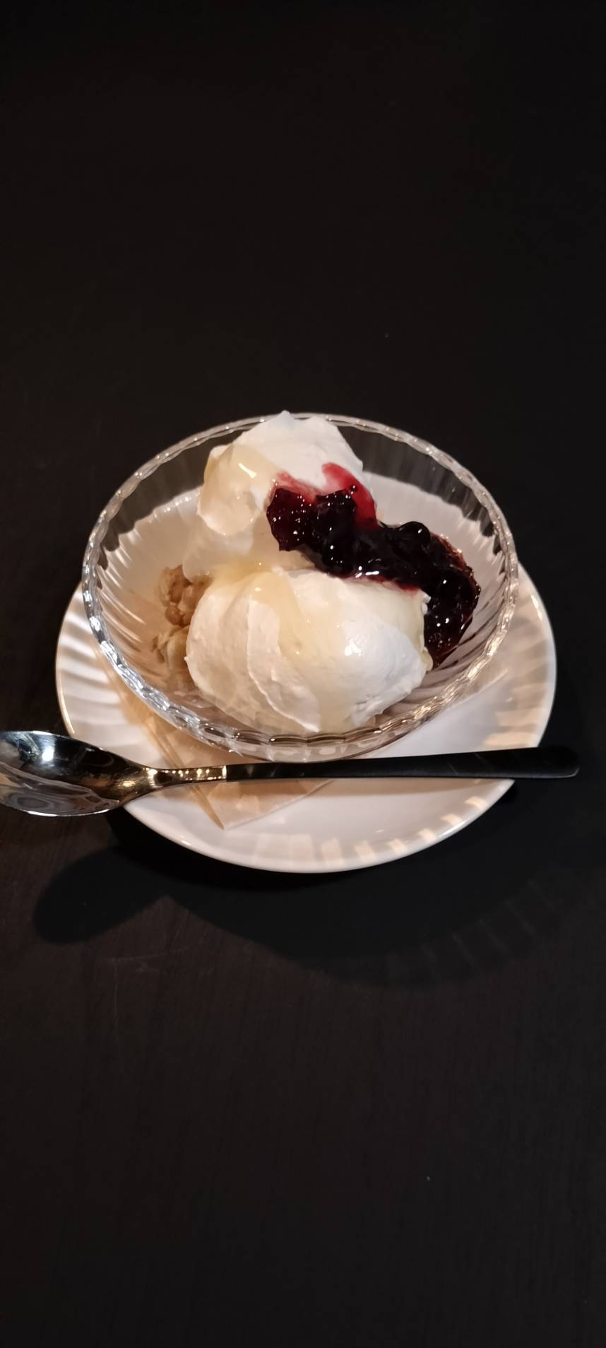 水切りヨーグルトとホイップ生クリーム、サッパリとほどよい甘さに仕上げました>